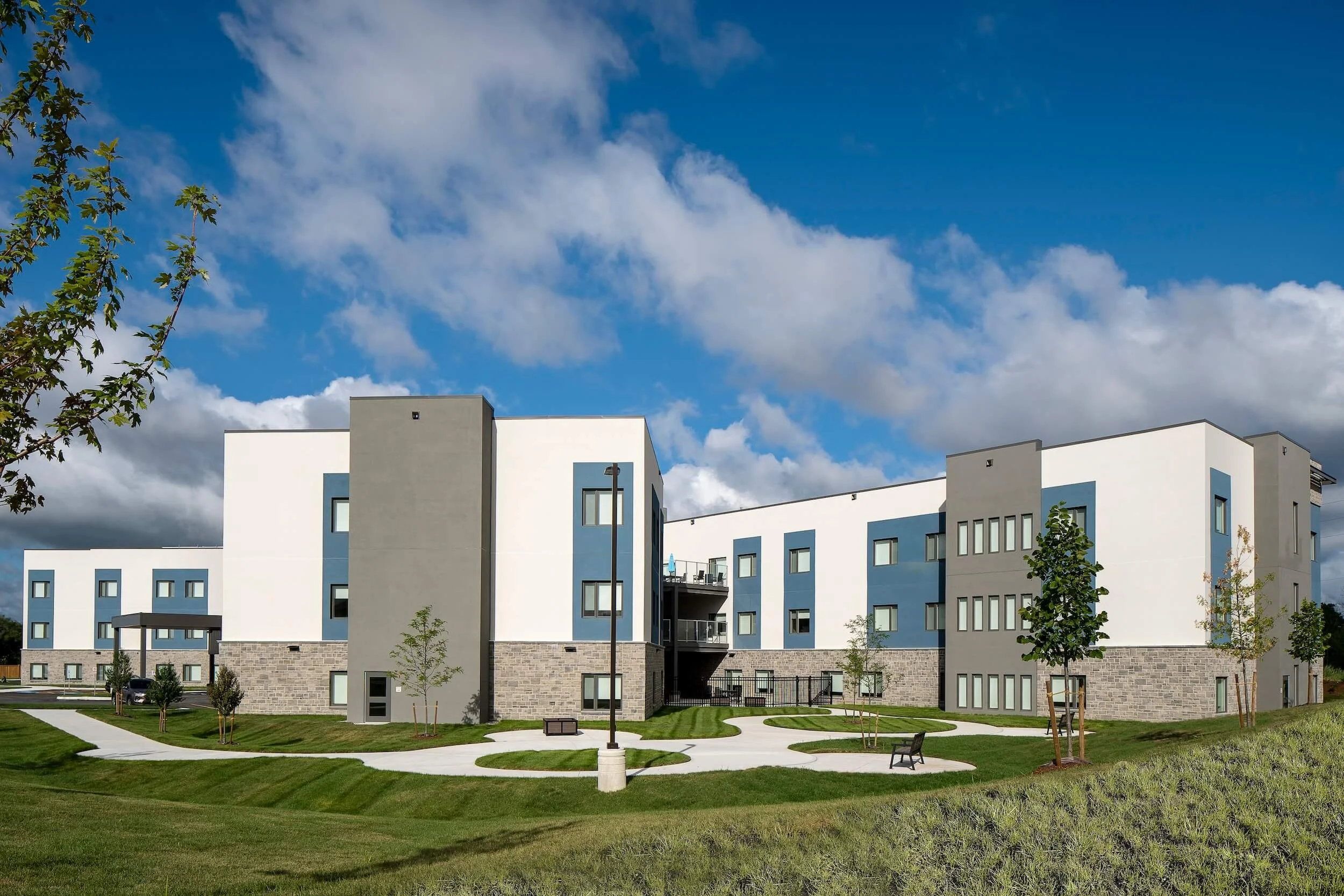 In response to the growing need for high-quality long-term care facilities, our team embarked on a comprehensive project to design and construct a three-story, 160-bed long-term care home prototype. With locations in London and Cornwall, this facility was designed with a focus on creating a bright, open, and vibrant environment with all of the comforts of a home.